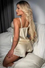 -62%Baby Doll, feito em cetim delicado, com detalhes em renda, blusa com alça regulável, short com elástico que contorna cintura, peça super elegante para suas noites quentes.
