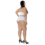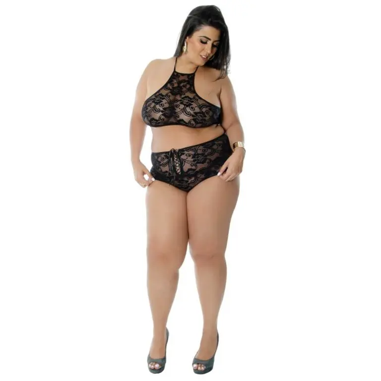 -75%O Conjunto Mosely é um modelo perfeito para as mulheres românticas que apostam no conforto em sua intimidade. Top em renda com ajuste elástico no pescoço e fechamento nas costas com 5 colchetes. Calcinha modelo fio dental também em renda, cintura alta, possui fechamento na frente por fita de cetim trançada. Impossível não se apaixonar por este modelo!