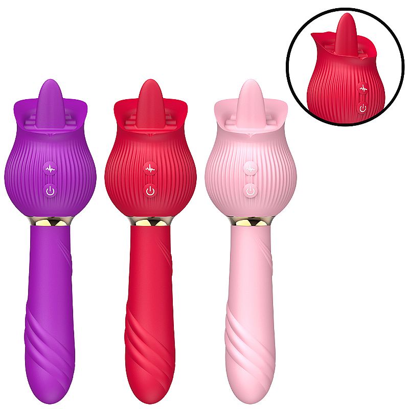 Vibrador de ponto G e clitóris com formato de Rosa de Língua –  12 modos de estimulação de Língua. 12 modos de vibração.